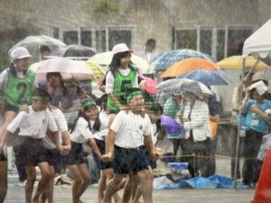 今日仕事でお宅に向かっている途中で中学校の運動会をやっていた。行きしなは降ってなかったのだが、帰りに通った時には大雨になっていたので中断されていた。よりによって大雨の中しているのが気の毒で仕方なかった。恐らく明日は晴れで、しかも晴天降水確率0%になっているのだ。親御さんもこの日の為に会社を休んでいるので見に来てるのだ。しかし天気だけはどうしようもない。(~_~;)